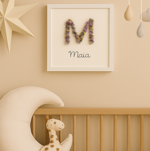 La lettre Florale sera fabriquée sur mesure avec des fleurs séchées locales et naturelles